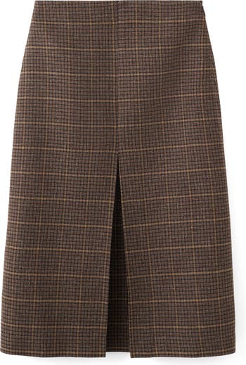 A single pleat at the front adds to the polished vibes of this wool-kissed check midi skirt that promises to put a pop of prep in your step.
