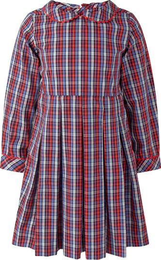Dress your little one in the adorable red Check Pleated Dress. The charming check pattern in hues of red, blue and ivory is complimented by red ricrac trimmings, and the sash tie at the back adds a touch of sweetness. Perfect for your child's playful and fun style.