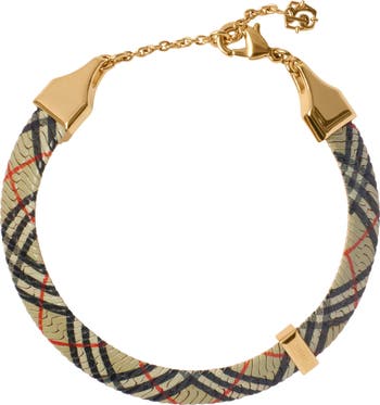 A chain bracelet made in Italy from brass with gold plating. The design is printed with the Burberry Check and finished with a logo-engraved bar and B charm. ||Clasp closure|B-shaped charm|Engraved Burberry lettering at bar