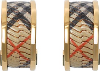 A pair of gold-plated hoop earrings, made in Italy. The design is printed with the Burberry Check and finished with our engraved logo.