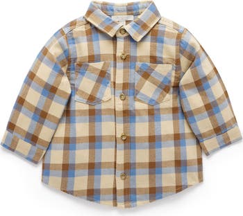 Our functional Farm Check Shirt is a great layering style. Featuring a structured collar, an over sized check design, wood look buttons and front pockets. Made from soft 100% Cotton flannelette with a brushed hand feel. Style with our Classic Chinos and Denim Shearling Jacket for a sweet winter outfit.