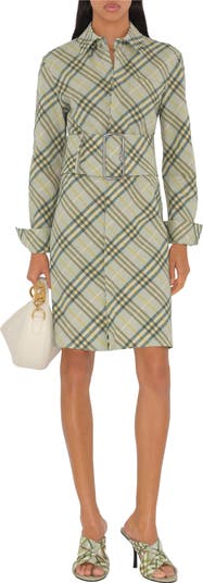 A shirt dress made in Italy from a washed stretch linen woven with the Burberry Check. The design is tailored to a regular fit with a wide B buckle belt to adjust the shape.||Button closure|Point collar|Chest patch pocket|B buckle belt|Single-button cuffs|Straight hem