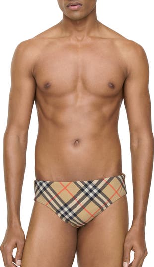 Drawcord swim briefs in stretch nylon printed with the Burberry Check. Part of Burberry Classics, wardrobe foundations with a unique Burberry slant.