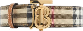 An Italian-made belt printed with the Burberry Check in signature archive beige. The design is lined in smooth leather and secured with a gold-plated Thomas Burberry Monogram plaque buckle.||Hand-painted edges|Comes with a dust bag