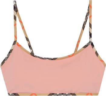 A scoop-neck bikini top in stretch nylon, edged with the Burberry Check in signature sand beige.||Removable padded cups
