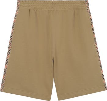 Shorts in lightweight loop-back cotton, cut to a slim fit. The drawcord style is framed with Burberry Check taping in signature archive beige.||Interior drawcord waist|Side slip pockets, back patch pocket|Embroidered Equestrian Knight Design at back pocket