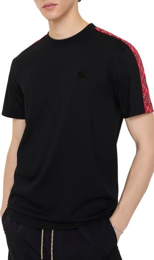 A T-shirt in lightweight cotton jersey, cut to a slim fit and embroidered with the Equestrian Knight Design. The style is framed with Burberry Check taping at the sleeves in a seasonal crayon red – created as part of our Year of the Horse capsule.||Rib-knit neckline|Embroidered Equestrian Knight Design at chest