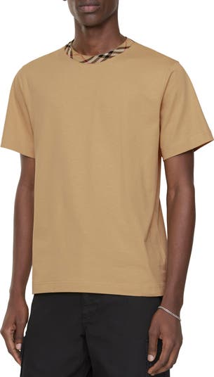 A crew-neck T-shirt in cotton jersey, cut to a relaxed fit. The collar is detailed with Burberry Check taping in our signature sand beige.||Rib-knit neckline
