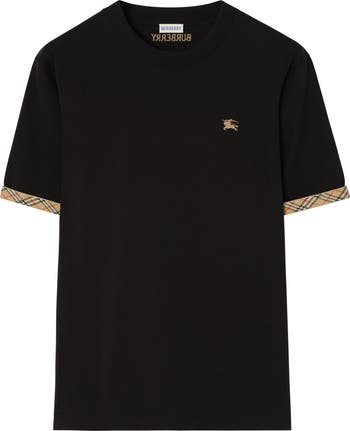 A T-shirt in cotton jersey, cut to a relaxed fit. The style is embroidered with the Equestrian Knight Design and edged with Burberry Check taping at the cuffs in our signature sand beige colourway.