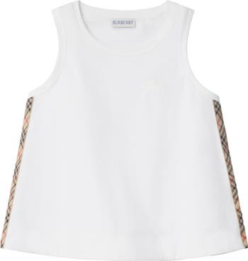 A sleeveless top in cotton jersey, edged with Burberry Check taping in signature archive beige. The style is finished with a tonal embroidered Equestrian Knight Design.||Embroidered Equestrian Knight Design at chest