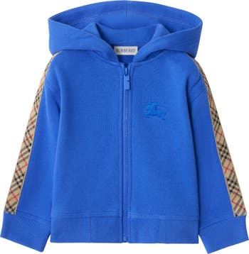 A zip hoodie in loop-back cotton, framed with Burberry Check taping at the sleeves in our signature archive beige colourway. The style is embroidered with a tonal Equestrian Knight Design.
