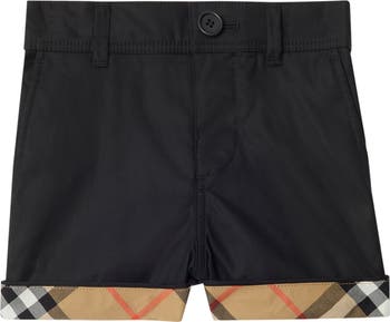 A pair of shorts made from cotton twill, featuring turn-ups woven with the Burberry Check in signature sand beige.||Button closure|Back elasticated waist|Side slip pockets, back welt pocket