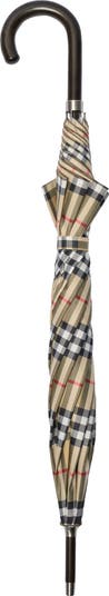 A walking umbrella woven with the Burberry Check in our signature sand beige colourway. The design features a maple wood handle with a brushed metal ring engraved with our Equestrian Knight Design.||Press-stud closure|Comes with coordinating cover