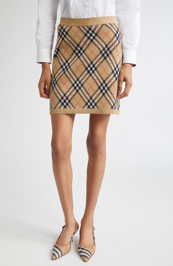 Burberry house check patterns this slim-fitting sweater-skirt knit from a soft wool blend.