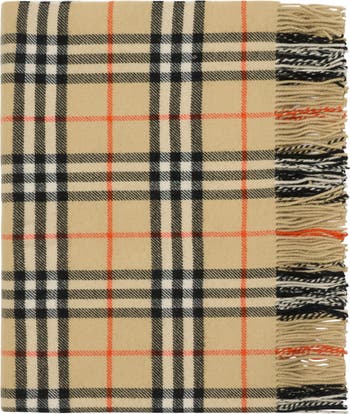 A blanket in wool cashmere woven with the Burberry Check. Made at a 200-year-old Scottish mill, the fabric is washed in local spring water and brushed with teasels for an ultra-soft finish. Part of Burberry Classics, wardrobe foundations with a unique Burberry slant. ||Rectangular|Fringing at both ends