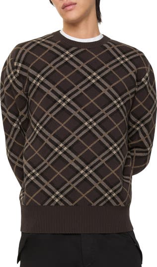 A sweater in a lightweight wool cashmere blend, jacquard-knitted with the Burberry Check. The crew-neck style is cut to a relaxed fit.||Rib-knit trims