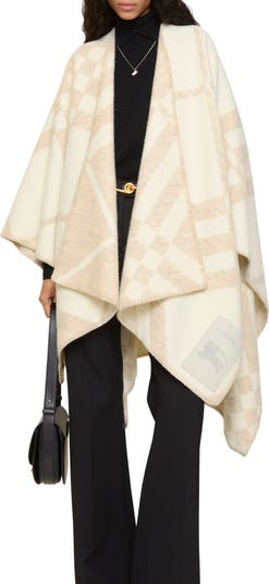 Embrace the cold weather in the heritage style of this wool-cashmere cape crafted at a Scottish mill founded in 1797 in two-tone Burberry Check jacquard on an exaggerated scale.
