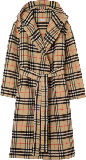 A hooded robe made in Scotland from a cosy blend of wool and cashmere. The design is woven with the Burberry Check in our signature sand beige colourway.||Self-tie belt|Side patch pockets