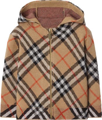 A zip hoodie made from wool, jacquard-knitted with the Burberry Check. Part of Burberry Classics, wardrobe foundations with a unique Burberry slant.||Zip closure|Side slip pockets