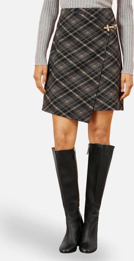 Be bang on trend this season in this gorgeous check skirt, The wrap style is super flattering, with a buckle fastening detail to elevate the look. Style with a roll neck and boots for an everyday chic look.