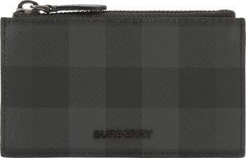 A zip card case in Burberry Check, lined with smooth calf leather. The design is finished with a metal logo.||Five card slots |Zip pocket |Hand-painted edges |Polished metal hardware |Raised Burberry lettering at front|Comes with a dust bag