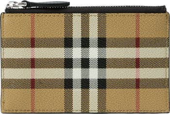 A zip card case made from a coated cotton blend printed with the Burberry Check. The design is lined in smooth calf leather. ||Zip closure |Five card slots |Hand-painted edges |Brushed metal hardware |Comes with a dust bag
