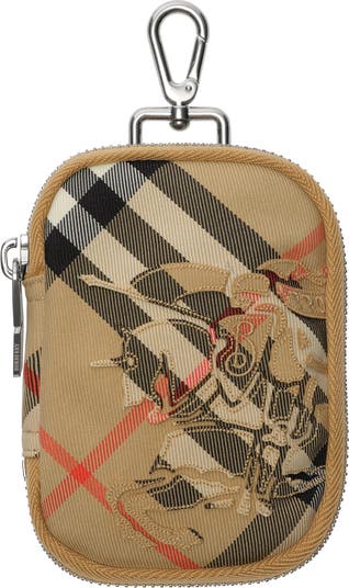A compact zip wallet woven with the Burberry Check in signature sand beige, appliquéd with a matching Equestrian Knight Design. Attach it to a backpack using the logo-engraved dog clip.