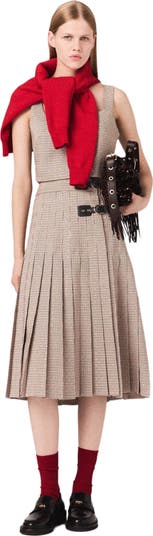 This season is all about short, statement pieces, designed to be layered in a modern way. Fitted cuts are adorned with bright details that transform the look.This houndstooth crop top combines a graphic structure with discreet rhinestones that add sparkle. Its square neckline and side zip fastening create a precise finish, while maintaining a contemporary line.Worn with the matching pleated skirt, loafers and a rhinestone bag, it creates a bold and feminine silhouette where comfort and sparkle meet.