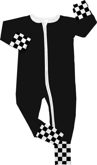 Convertible one-piece footed romper in buttery soft viscose. Featuring a bold black and checkered print for your action-packed little one who’s ready to race from the streets to the sheets.
