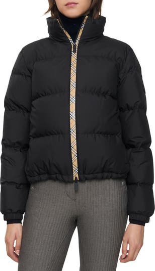 A puffer jacket with Burberry Check taping at the front zip and a packaway hood in our signature sand beige colourway. The Ambleside is cut to a regular fit and appliquéd with our Knight stamp, an archival motif from the 1980s.||Two-way zip closure|Packaway drawcord hood|Side zip pockets|Elasticated cuffs|Drawcord hem|Silicone patch with Equestrian Knight Design at sleeve|Comes with a garment bag