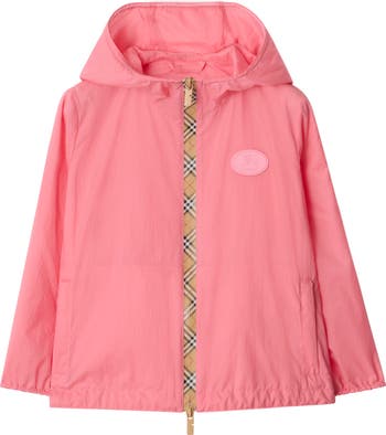 A lightweight hooded jacket in ripstop nylon, detailed with Burberry Check taping and B-cut zip pulls.||Two-way zip closure|Side zip pockets|Elasticated cuffs|Drawcord hem|Silicone patch with Equestrian Knight Design at chest