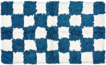 Crisp checks are anything but basic against the plush backdrop of this cotton rug that cushions your first step out of morning showers or evening soaks.