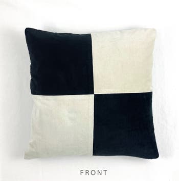 Introducing Mellowworks Home Collection - A Modern collection of mid-century inspired plush velvet pillows in retro colors and simple color blocks. These patch-work constructed pillow covers are DOUBLE SIDED with plush velvet on the front and the back. You can use the color-block side for a bold look and change to the solid color when you want something more mellow. Or mix-and match for new combinations everyday. The inside is lined with a cotton lining for durability. FEATURES: - 18" x 18" Pillow Cover - Double-sided with 100% Cotton Velvet on the front and back - Patch-work construction - Cotton lining inside - Hidden zipper closure - Insert not included Made in India in a Fair Trade Certified™ facility.