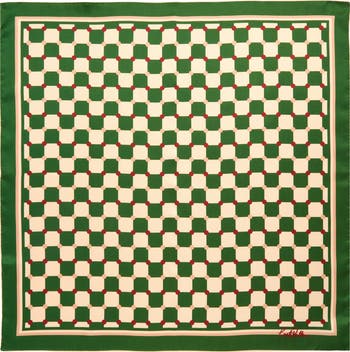 Lost Pattern Checkerboard Silk Square Bandana, Main, color, Green