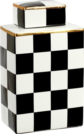 Mark Roberts Checkered Box Jar with Lid 9", Main, color, Black