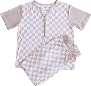 Our Checkered Mama Pajamas are the epitome of comfort and style, designed specifically for new moms to cherish those special moments with their little ones. Made from premium fabric, these pajamas offer an unmatched level of softness and breathability, ensuring a cozy and soothing experience during hospital stays, postpartum recovery, or relaxed days at home. The checkered patterns add a touch of charm, perfectly matching our Checkered Rompee and Checkered Shortie, creating adorable coordinated sets that celebrate the joy of motherhood. With practicality in mind, our Mama Pajamas feature convenient snaps that go down to the sternum, making them breastfeeding-friendly for easy nursing access. Embrace the numerous benefits of this fabric, as it naturally regulates body temperature, keeping you cool and dry in warmer weather and providing warmth during cooler nights. Its hypoallergenic properties make it gentle on both mom's and baby's sensitive skin, offering a worry-free experience for you and your little one.