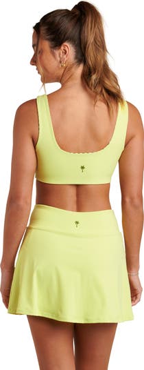 Sewn-in cups add coverage to this sports bra made in a reversible design.