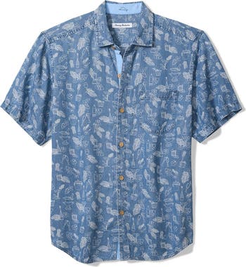 Tommy Bahama Cheers & Chillers Short Sleeve Seersucker Button-Up Shirt, Main, color, Cabo Blue