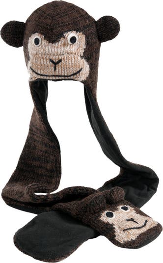 The Cheeta Monkey Hatscarf is hand-knit from 100% wool and is lined with soft Polyester fleece. It features long scarf panels with pockets. This will ensure you are covered from head to paw! Available in 2 sizes for both toddlers/kids and adults. The Cheeta Monkey Hatscarf is hand-made in Nepal from high-quality Merino Wool. Size guide: Small - 1-4yrs Medium/Large - 5+ (including adults!)