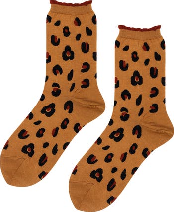 Serve up bold energy in these cheetah-patterned crew socks made of a breathable cotton blend.