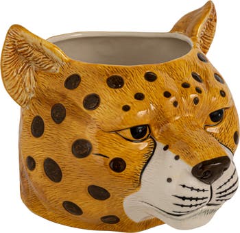 - A striking ceramic cheetah head planter that adds a touch of wild elegance to any space
