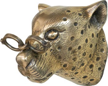 - An intriguing cheetah head wall décor featuring eyeglasses and an antique brass finish
