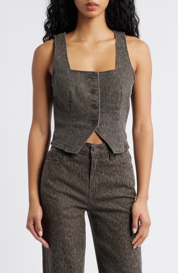 Make denim day a little bit fierce in a fitted vest covered in a mildly wild print.