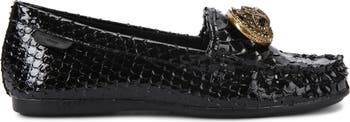 Complete your look with the contemporary sophistication of this croc-embossed loafer featuring a moc-stitched toe and crystal-encrusted logo hardware.