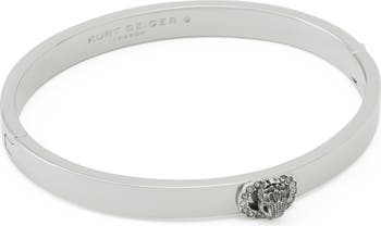 A crystal-lined eagle-head motif crowns this hinge bangle with signature charm in a polished design with understated presence.