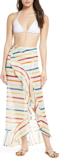 Cover up after a swim in this flowy sheer sarong trimmed with luscious ruffles. XS/S=0-6, M/L=8-14.