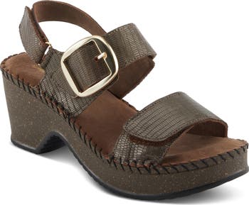Adjustable straps offer a customized fit in a slingback sandal lifted by a chunky platform and sculptural block heel.