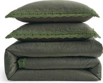 Made with a velvety chenille front and lustrous sateen reverse, this lace-accented set is an easy way to bring elevated sophistication to your bedroom retreat.