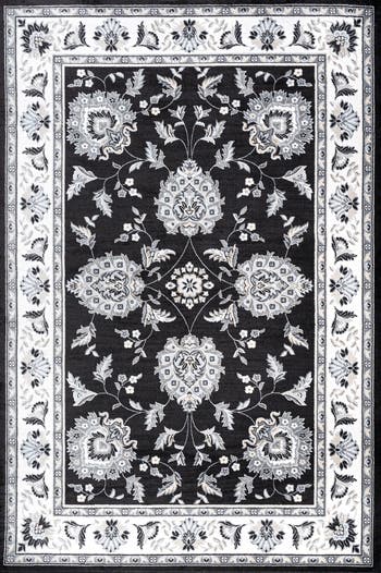 This elegant cottage-style rug is inspired by traditional Persian patterns. French Country sky blue is accented with gray and ivory - the perfect way update for a living room, bedroom, entry or dining room. This durable, elegant rug works beautifully in both traditional and modern spaces.
