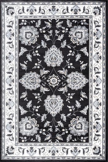 This elegant cottage-style rug is inspired by traditional Persian patterns. Deep French Country blue is accented with gray and ivory - the perfect way update for a living room, bedroom, entry or dining room. This durable, elegant rug works beautifully in both traditional and modern spaces.